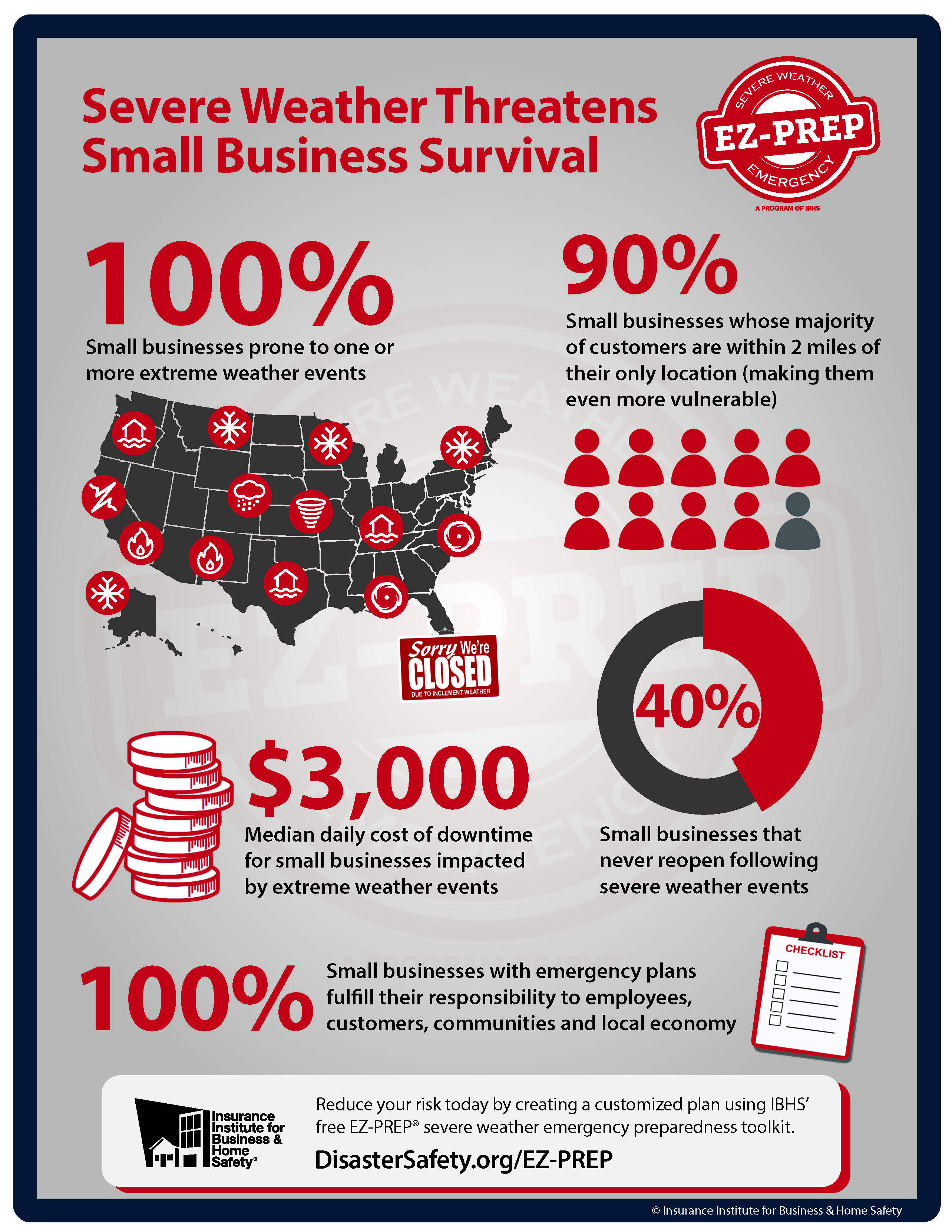 IBHS also provides numerous resources for business owners to prepare their facilities and operations for tropical cyclones and severe summer storms. This includes a reduce hurricane damages to businesses guide, business protection resources, business protection lessons learned, and business continuity planning.